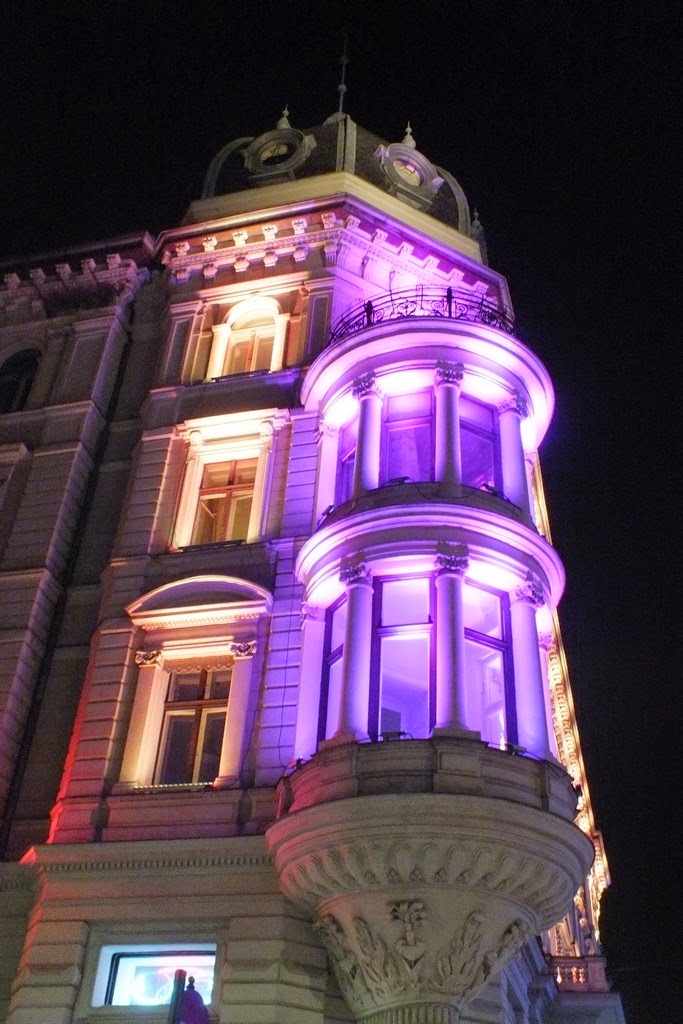 O 19:35 w sobotę, stanęłam na deptaku i ruszyłam w stronę Placu Wolności, stając się aktywną uczestniczką festiwalu, z wprawą godną zawodnika Slalomu Giganta, wymijającą pozostałych przechodniów. W duchu cieszyłam się z wyboru dnia i godziny, licząc, że największa fala zwiedzających już minęła. Jednak w miarę oddalania się od skrzyżowania z ulicą Piłsudskiego, musiałam szybko zweryfikować swoją teorię, mimo wszystko uparcie brnąc dalej. Pierwsze rozczarowanie przeżyłam już po paru krokach, kiedy ślicznie podświetlone kamienice nagle się skończyły. Ile ich było? Raptem kilka po obu stronach ulicy i nagle koniec. Spodziewałam się, iż będą chociaż z rzadka oświetlone przez całą długość ulicy, a tu niespodzianka. Aczkolwiek niestrudzenie brnęłam dalej.