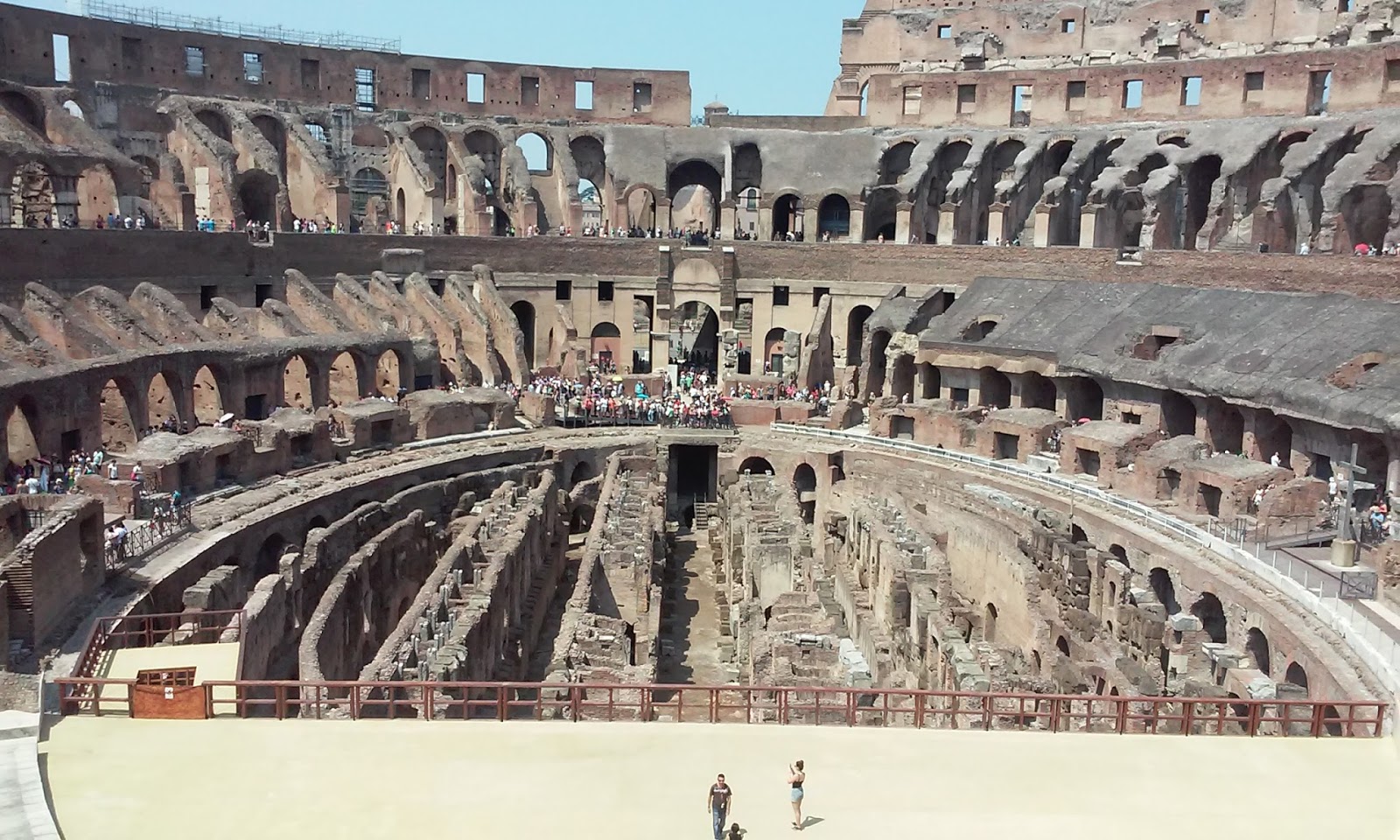 Jeśli chodzi o same zabytki czy zwiedzanie Rzymu, fajnym jest to, że wiele miejsc można odwiedzić za darmo, snuć się pomiędzy starymi budowlami, pamiętającymi czasy Juliusza Cezara jak w przypadku Forum Imperiali. Wiele ze starożytnych konstrukcji zostało wtopione, zaadaptowane i unowocześnione, tworząc nieco groteskowe pod względem architektonicznym struktury, jakoś dziwnie kojarzące mi się z tworem Frankensteina. Ponadto wszystkie co ważniejsze i bardziej znane zabytki znajdują się w swoim bliskim sąsiedztwie. Człowiek zaopatrzony wygodne buty i dużą dozę samozaparcia, mógłby spokojnie zwiedzić je wszystkie w ciągu dwóch dni. Dlatego też tak popularne są autokary widokowe, które zapewniają turystom szybki objazd po najważniejszych miejscach w Rzymie. Ale po co, kiedy wszystko odbywa się w takim tempie, że w zasadzie na nic poza zrobieniem pamiątkowej fotki nie ma czasu. Moim zdaniem już lepiej powłóczyć się z mapą po rzymskich uliczkach i nawet nieco zabłądzić, by móc samemu to sobie na spokojnie obejrzeć. Człowiek nie wie czym się wówczas zachwyci czy zawiedzie. Największe rozczarowanie poznawcze przeżyłam w trakcie wizyty w Koloseum. Wszakże to obowiązkowy punkt programu każdej wycieczki po Rzymie. I naprawdę mam tu namyśli KAŻDĄ wycieczkę, o czym może świadczyć mnogość ludzi starających się obejrzeć arenę, na której lwy rozszarpywały pierwszych chrześcijan a gladiatorzy pragnęli zdobyć przychylność tłumu i cezara. Jakoś trudno napawać się atmosferą tego miejsca, kiedy każdy cię popycha, poszturchuje, je, pije, szuka zagubionego dziecka, pokrzykuje, robi zdjęcia... I to wszystko pomnożone przez setki, tysiące zwiedzających. W upale. Gdzie nie uświadczy się najmniejszego powiewu wiatru. Naprawdę przemyślcie swoją wizytę w Koloseum.