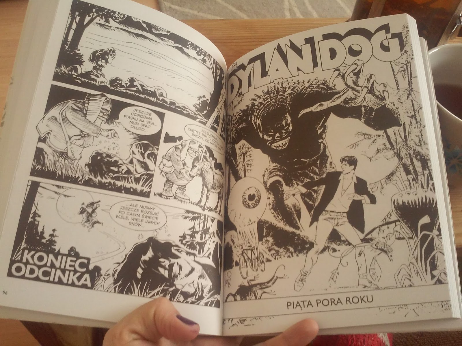 Dawno temu, bo jeszcze w trakcie trwania pierwszego roku działalności tego bloga, próbowałam Wam przybliżyć sylwetkę jednego z moich ulubionych, komiksowych detektywów - Dylana Doga. Było nie tyle związane z nieznajomością tej postaci w szerszych kręgach miłośników fantastyki, ale też z pojawieniem się plotki, że wydawnictwo Bum Projekt ma przejąć pałeczkę od Egmontu i wznowić wydawanie zeszytów z przygodami "detektywa mroku". Na szczęście sen okazał się jawą, a w plotce tej znalazła się cała masa prawdy i Dylan wrócił na półki księgarń. Dzięki temu na ostatnim MFKiG mogłam nabyć swój absolutnie własny egzemplarz. Jednak dopiero teraz (nie będę liczyć ile czasu minęło odkąd zagościł na mojej półce) doczekał się swojego czasu antenowego, co nie znaczy, że leżał nie przeczytany. Co jak co, ale nie zajrzeć do niego chyba nie dałabym rady.