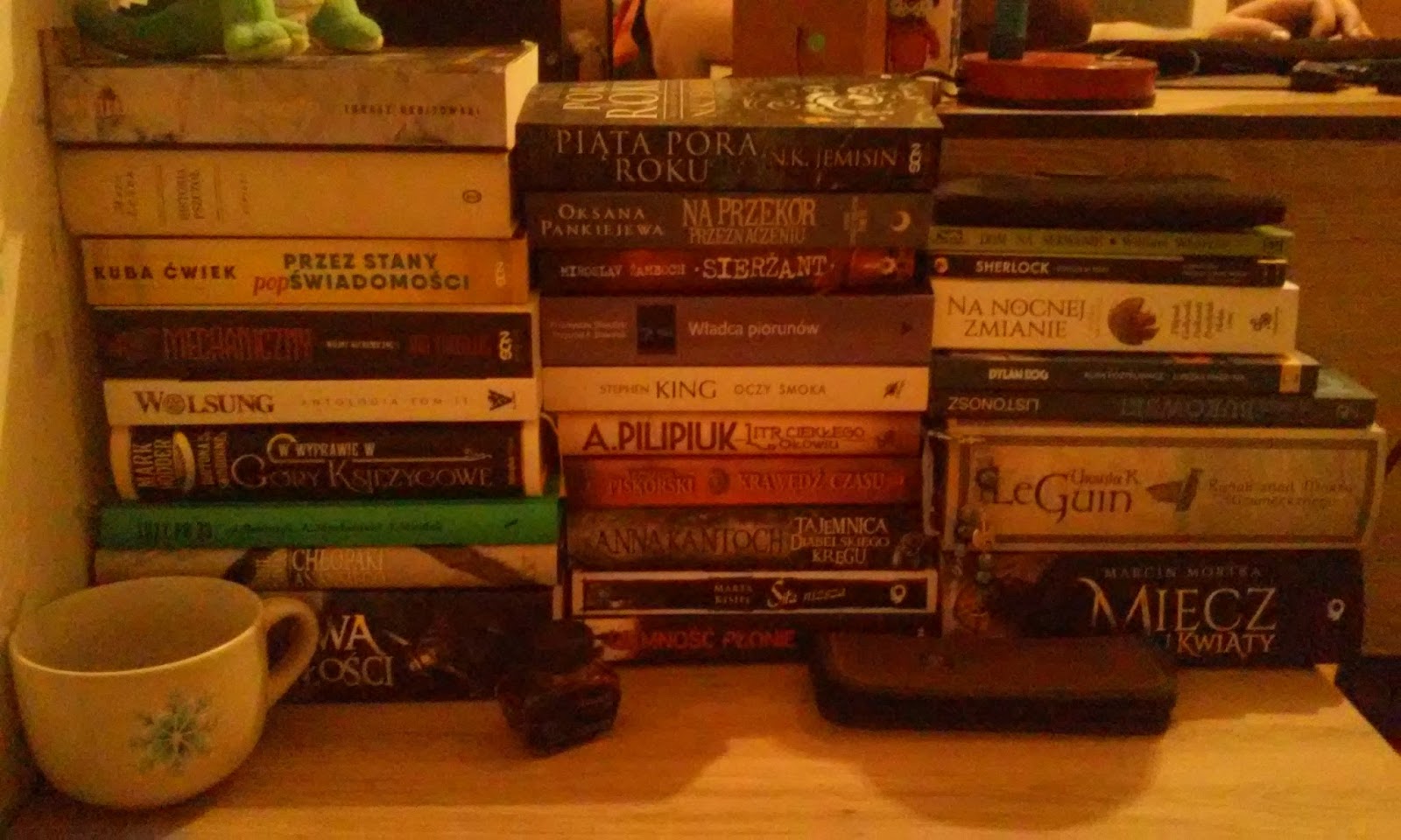 Krótki rzut oka na książkową ścianę, która rośnie mi na stoliku. Widzicie coś dla siebie?