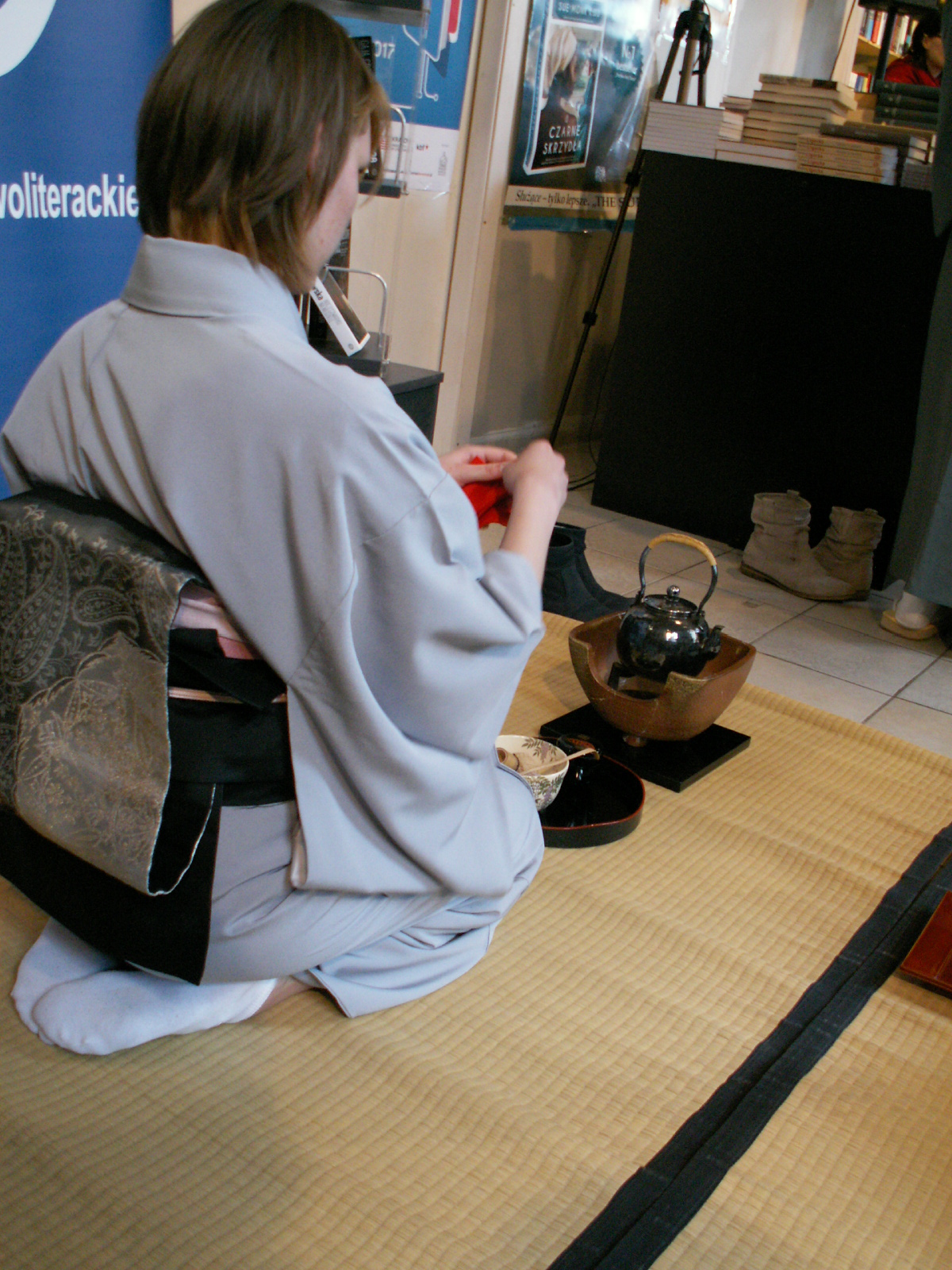 Zaczęło się od podróży Polskim Busem, który zaskoczył nawet mnie - weterankę przejazdów PKSowych. Sporo miejsca, przyjemna temperatura i toaleta niewołająca o pomstę do nieba, pozwoliły mi spokojnie poczytać, skleić jakąś recenzję, pograć nieco na komórce i nawet się zdrzemnąć, a nie zawisnąć w jakimś dziwnym stanie braku świadomości. Do tego przyjazd chwilę przed czasem dodatkowo uradował moje podróżnicze serce. Nie wiem, czy zawsze się tak dzieje - to była moja pierwsza przygoda z czerwonym przewoźnikiem - ale mam pewność, że spróbuję znowu. Na miejscu już czekała na mnie Hadynka z całym, obszernym planem działania i po błyskawicznym obiedzie ruszyłyśmy w miasto. A konkretnie do Księgarni Pod Globusem, gdzie miała miejsce premiera książki Kazuki Sakubary "Czerwone dziewczyny" połączona z japońską ceremonią przygotowywania herbaty. Bardzo łatwo się domyśleć, co skusiło mnie w tym spotkaniu, tym bardziej iż ostatnio miałam okazję nabyć nieco matchy dla siostry. Z głównych wrażeń związanych ze spotkaniem mam głównie fascynacje nietuzinkowym smakiem i konsystencją podawanej w specjalnych czarkach herbaty. Cały rytuał, misterna otoczka ma być poniekąd pretekstem do spotkania, czasem jaki należy poświęcić sobie nawzajem. Nie tak jak u nas by byle szybciej zalać i zaparzyć, wypić i się pożegnać. W takich chwilach czas wydaje się być nieocenioną wartością, którą z chęcią dzieli się z bliskimi (i nie tylko), a nie milczącą pretensją o jego barku na takie bezeceństwa.