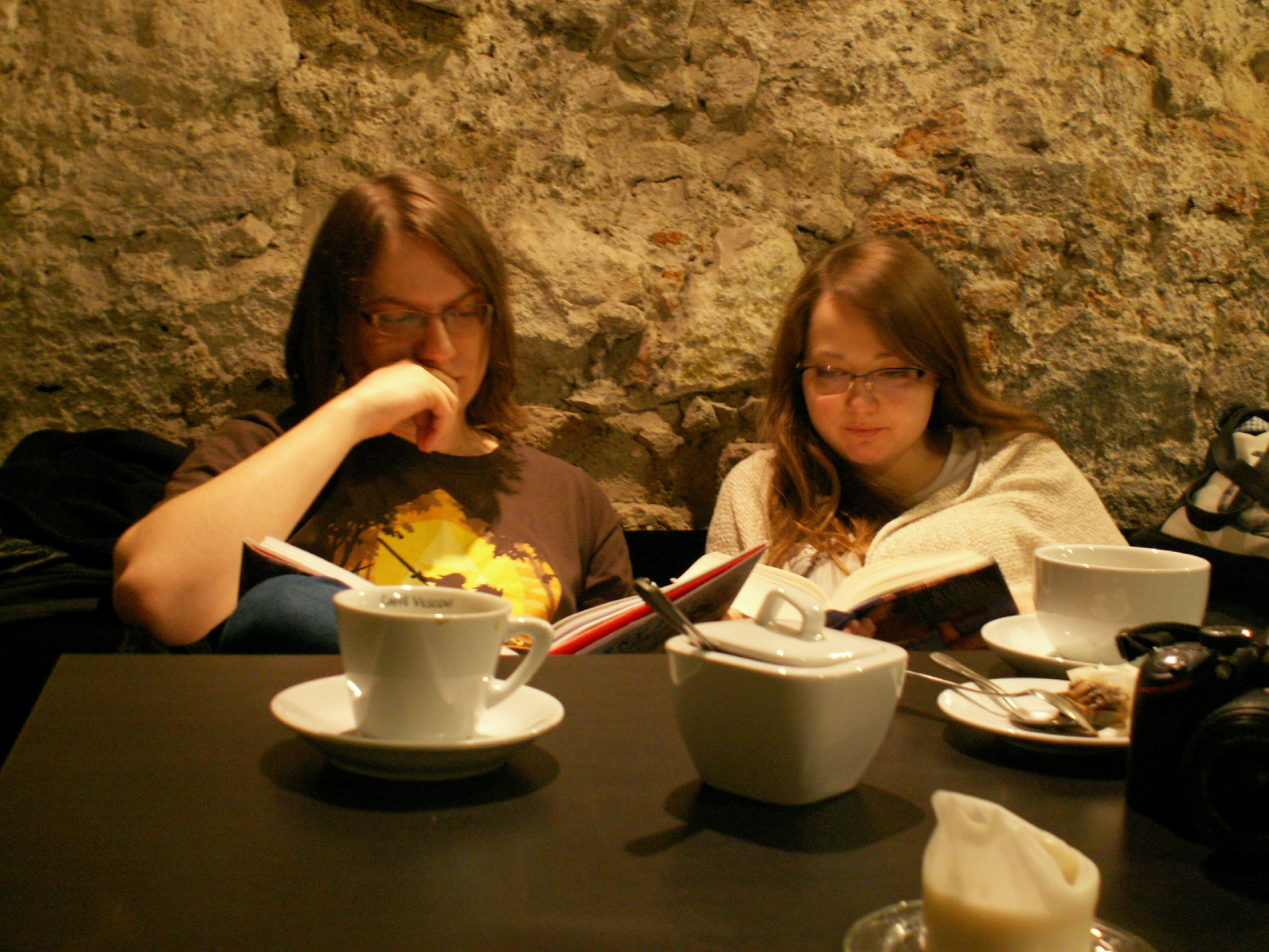 Z wrażeń ogólnych muszę przyznać, że była to przyjemna odmiana. Jestem czytaczem w biegu. Wykorzystuję każdą chwilę w komunikacji miejskiej, czekanie na przystanku, połykanie z rana śniadania byle tylko zahaczyć wzrokiem o kilka stron. Wieczorem czytam dopóki mój prywatny mózgowy system nie odmówi posłuszeństwa, co zazwyczaj sprowadza się do pół godziny relaksu. I szczerze nie pamiętam kiedy ostatnio siedziałam w spokoju bite sto dwadzieścia minut i czytałam przy kawie. Nawet mój wewnętrzny zegarek w pewnej chwili zaczął się buntować i wołać "Rusz się! Idź zrobić coś pożytecznego!", ale nadal nie wypadało hałasować, więc czytałam dalej. Przez chwilę nawet zastanawiałam się, czy w Łodzi czegoś takiego by nie zorganizować. Nawet mam na myśli jedno miejsce, gdzie mogłoby się to udać. A potem zaraz odzywa się złośliwy chochlik twierdzący, że na zwykłe blogowanie ostatnio nie mam czasu, a co dopiero na to szczególne. Ale pomyśleć o tym zawsze można, prawda?