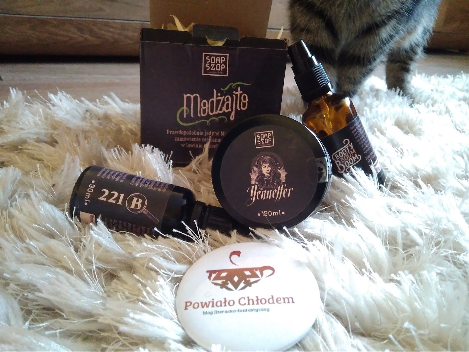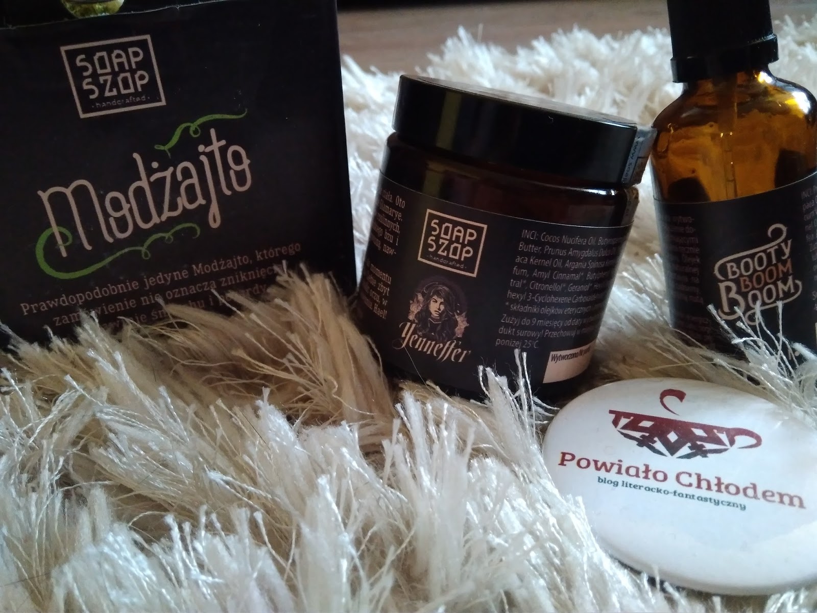 Mimo przygód z dostawą, jestem strasznie zadowolona z zakupu. Kontakt z paniami prowadzącymi sklep był cudowny, a mój problem rozwiązany niemal natychmiastowo. Gdy tylko skończą mi się rzeczy, ponowię swoje zamówienie licząc na to, że i tym razem się nie zawiodę. Jeśli jesteście zainteresowani jak to wszystko pachnie, wygląda i się używa, a przypadkiem jedziecie na Pyrkon, może znaleźć Soap Szop na sali wystawców. A jeśli nie chce Wam się czekać, możecie też odwiedzić sklep internetowy, który Wam podlinkowałam i zobaczyć, czy będziecie równie zadowoleni. Jak dla mnie sama inicjatywa już zasługuje na uznanie, a efekty prześcigają moje wyobrażenia. Ogólnie rzecz biorąc polecam. Ja - mól książkowy i powieściowy recenzent, dzielę się tym z Wami, ponieważ zwyczajnie uważam, że jest dobre.