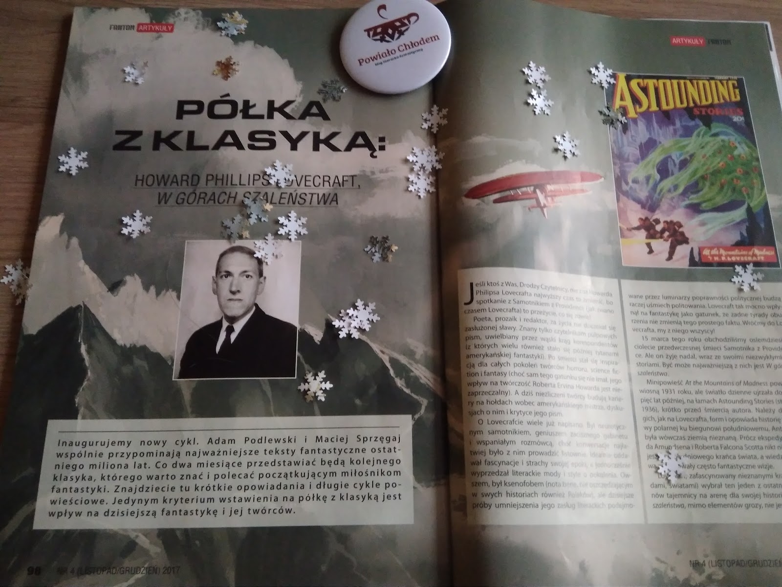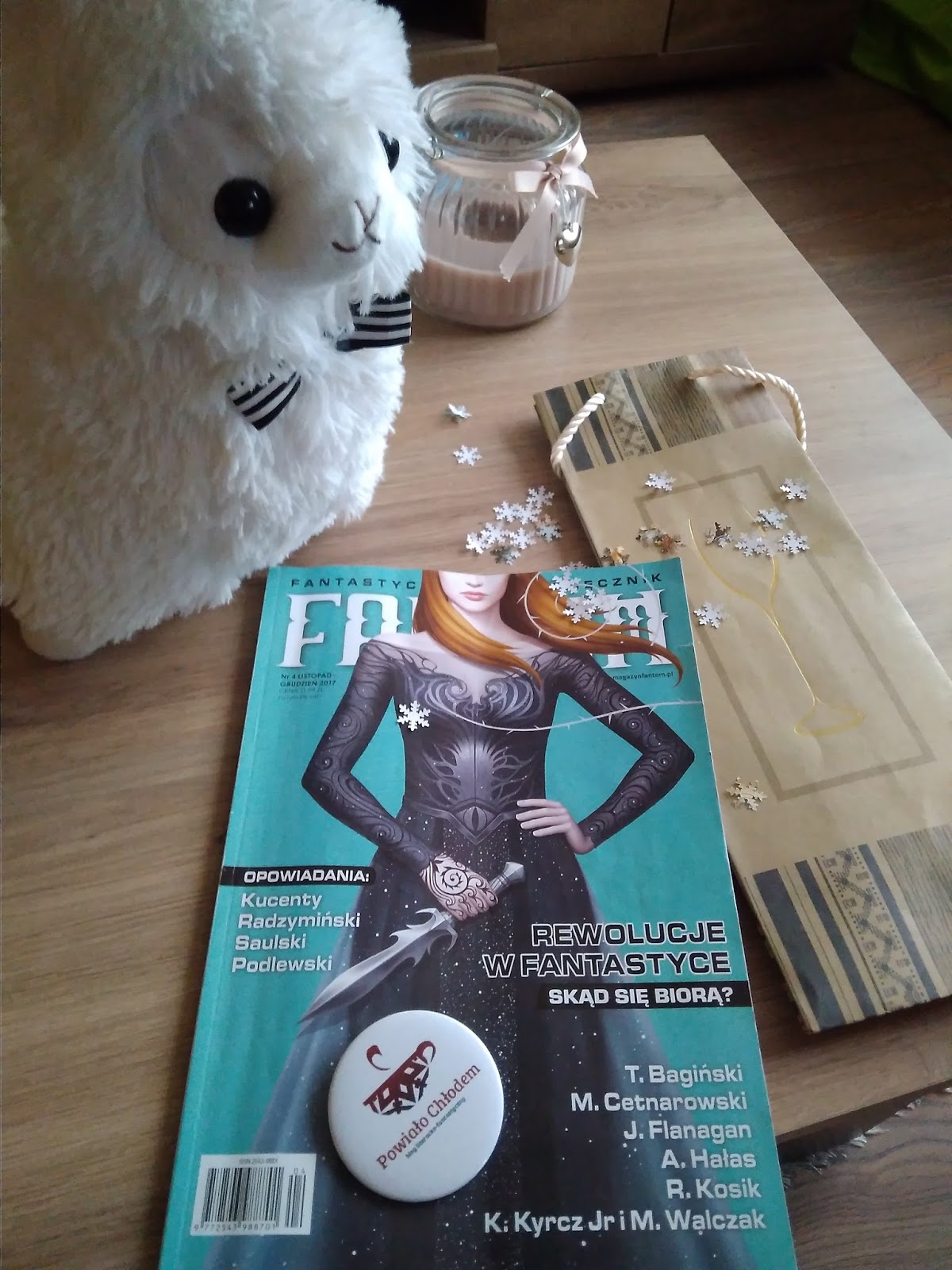było rozpoczęcie go od nietuzinkowych życzeń świątecznych, złożonych przez autorów, których teksty ukazały się w magazynie. Dalej było już bardziej rewolucyjnie, ponieważ taki właśnie temat przyświecał redaktorom tego wydania. Arkady Saulski opowiada o fantastyce w czasach PRLu i swoistym buncie autorów przeciwko władzy i cenzurze, rozważając również dlaczego “gatunek - zaciągnięty na zachodzie do kulturowej wojny - w Polsce jest na kulturowej wojny marginesie?”. Tekst szczególnie ciekawy dla osób, które tak jak ja, urodziły się już po wielkich przemianach ustrojowych. Drugi z kolei artykuł, autorstwa Adama Podlewskiego, stanowi uzupełnienie kwestii poruszanych w poprzednim felietonie.