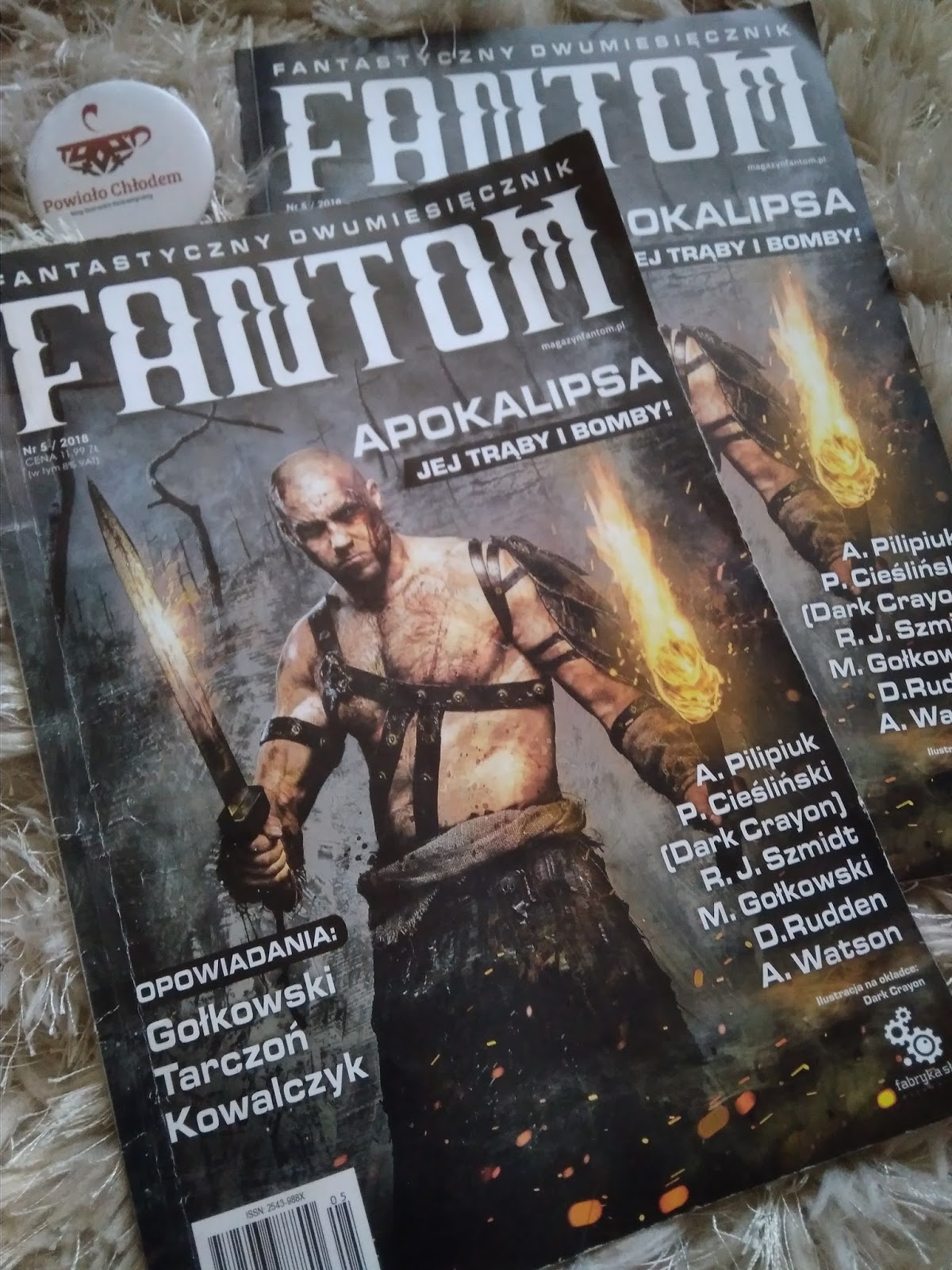 Po licznych perturbacjach, przygodach, zapomnieniach i przytłaczającej prozie dnia codziennego, w końcu zasiadam do recenzji, do której miałam się zabrać już z miesiąc temu.Od tamtej pory piąty “Fantom”, z niemo obrażonym postapokaliptycznym wojem zerkającym na mnie z okładki, leżał smętnie na moim biurku. Zdaję sobie sprawę, że tylko “trąby i bomby” zwiastujące koniec świata byłyby w stanie mnie usprawiedliwić, ale już jestem, kajam się niepomiernie i zabieram się do roboty, bo jeśli mnie kalendarz nie myli, jeszcze chwilka i będzie wychodził numer szósty. A pisanie kilku pod rząd “chłodnych prasówek” nie jest ani ciekawe ani przyjemne, przynajmniej z mojej perspektywy.