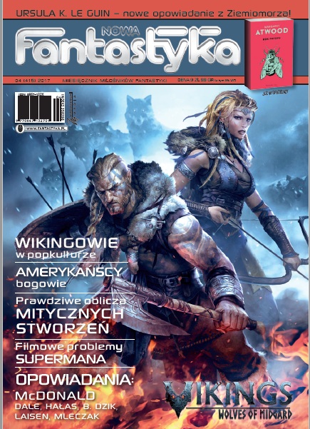 Czwarty z kolei numer tego roku wita nas okładką, na której pyszni się grafika z gry "Vikings. Wolves of Midgard". Tak jak w przypadku łamiących stereotypy (i błędnie utarte wzorce) serialowych "Wikingach", nie znajdziemy na niej rosłych barbarzyńców w rogatych hełmach. Jednak wszystkie niuanse wizerunku skandynawskich wojów w kulturze masowej najlepiej wyjaśnia artykuł Łukasza Wiśniewskiego, który wita nas na samym początku wydania. Ale, nim do niego dotrzemy, należy zwrócić uwagę na krótki tekścik zwykle pomijany w takich wypadkach. Mam na myśli tradycyjne i często przeoczane, odredaktorskie wstępniaki. A ten "kwietniowy" porusza dość bliski mi temat ogólnego zaniku poczucia humoru i towarzyszącej mu ekspansji fanatyzmu. Naprawdę polecam, choćby dla krótkiej refleksji, choćby dotyczącej tego, jak wielu znacie autorów (w domyśle fantastyki), których głównym orężem jest humor? Kolejnym, wartym uwagi przystankiem jest artykuł Piotra Zawady, opisujący prehistoryczne korzenie niektórych mitycznych stworzeń. Jest to doskonała porcja ciekawostek, które pozwolą Wam zabłysnąć na każdej fantastycznej imprezie (no dobrze, może nieco poniósł mnie entuzjazm).