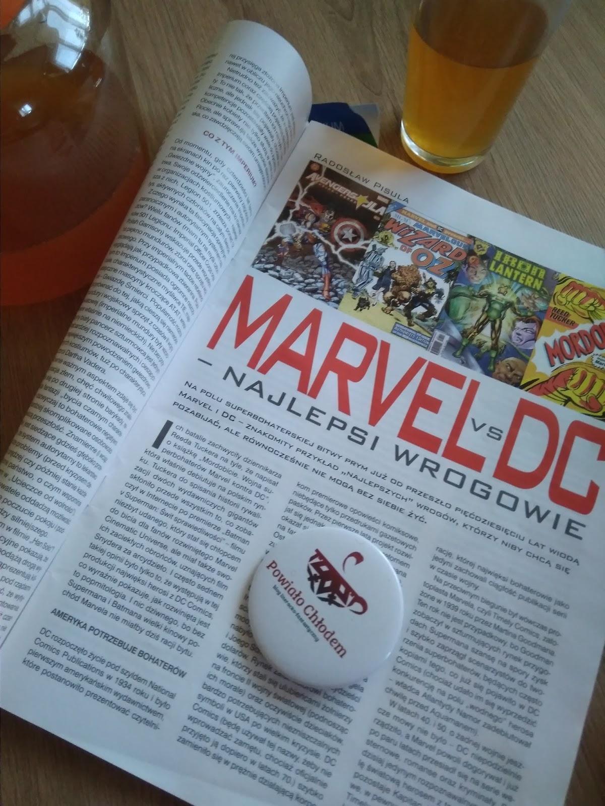 Tekst, który najbardziej przypadł mi do gustu to “Najlepsi wrogowie” Radosława Pisuli opisujący starcia dwóch największych komiksowych gigantów: Marvela i DC. A wszystko z okazji ukazania się “Mordobicia” - książki, w której została spisana historia ich “konfliktów”. Jak dzień bez nocy, tak DC nie może istnieć bez Marvela i na odwrót. Obaj wydawcy napędzają wzajemnie swój rozwój, co nie pozwala im popaść w stagnację i prowadzi niekiedy do bardzo zabawnych sytuacji i nietuzinkowych pomysłów. Ale więcej o tym znajdziecie w książce albo chociaż w samym artykule, aczkolwiek zaznaczam, że z oboma naprawdę warto się zapoznać. Z nie mniejszą sympatią odebrałam artykuł Witolda Vargasa o mitycznych kowalach i ich pochodzeniu od małp. Z resztą niezwykle przypadł mi do gustu ten mitologiczny dział, w którym mogę się nieco więcej dowiedzieć o jednej z moich fascynacji. “Między komiksem a brzegiem komputerowego ekrany” Łukasza Wiśniewskiego jest przeglądem gier utrzymanych właśnie w komiksowej estetyce z lekka tylko promującym “Darkest Dungeon”. Zostało to jednak na tyle zgrabnie przeprowadzone, że tak bardzo nie razi “lokowaniem produktu”. Sam tytuł zainteresował mnie głównie w kwestii prezentowej. Wiem, komu gra ta mogłaby się spodobać, a to już jakiś pozytyw.
