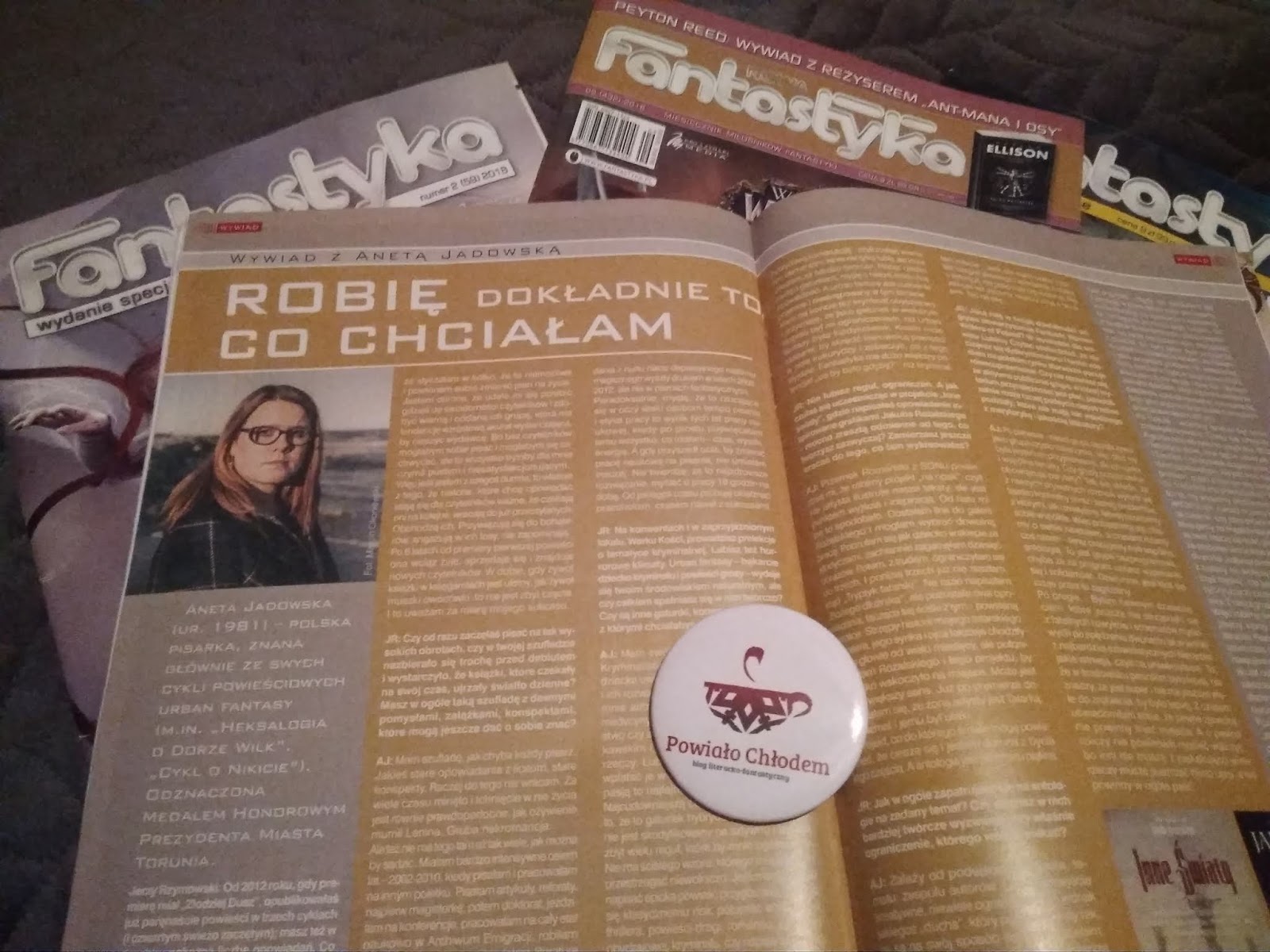 Bardzo ucieszył mnie też wywiad z Anetą Jadowską. Bardzo lubię tę autorkę jako osobę i choć nie jestem chyba targetem jej twórczości, zawsze chętnie pojawiam się na spotkaniach autorskich czy prelekcjach, które ona prowadzi. Stałe felietony jak
