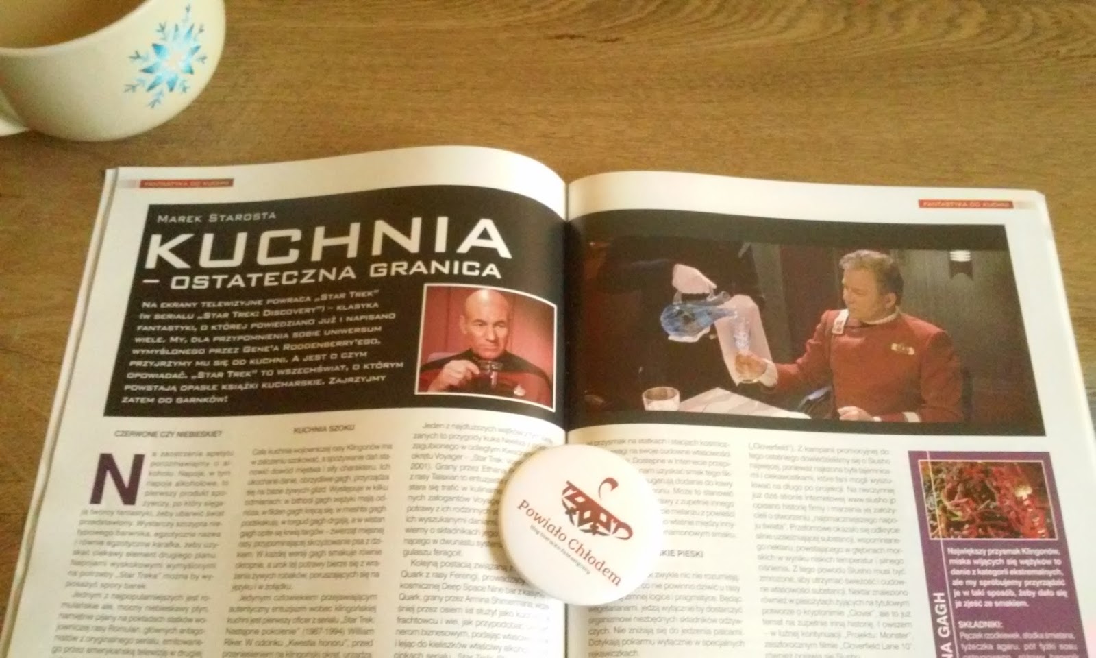 spodobał mi się tekst o kosmicznej kuchni. W tym Marek Starosta poszedł o krok dalej i podążył tam, gdzie nie dotarł jeszcze żaden człowiek, prezentując potrawy i napoje, jakie przewinęły się przez uniwersum Star Treka. Wisienką na torcie był przepis na jeden z największych klingońskich przysmaków. Palce lizać.