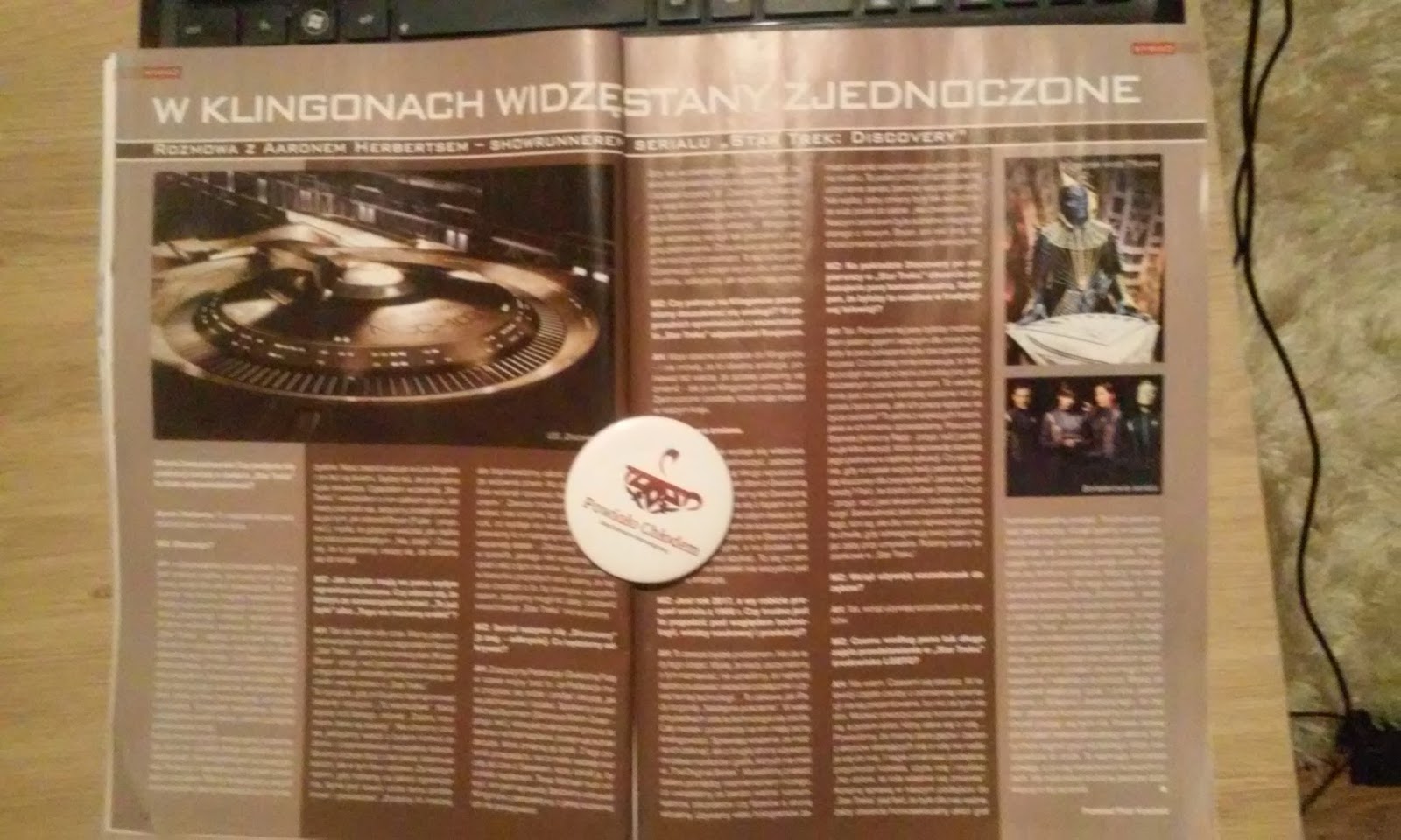 Niestety historia pozaziemskich substancji wpływających na Ziemian, o której mogłam przeczytać w kolejnym tekście, zdecydowanie nie była dla mnie. O ile nawiązania do herbertowsiego melanżu były ciekawe, o tyle pozostałe substancje zwyczajnie mnie nie obeszły. Podobnie było z artykułem o kulisach serialu "The Walking Dead". Dawno nie czytałam tak sztampowych i oczywistych odpowiedzi aktorów, które w zasadzie nic nie wnosiły nawet dla fana. Zdecydowanie lepiej wypadła rozmowa z Aaronem Herbertsem - showrunnerem serialu "Star Trek: Discovery". Może nadal nie był to krąg moich zainteresowań, ale przynajmniej wypadła ciekawiej. Na osłodę tej części
