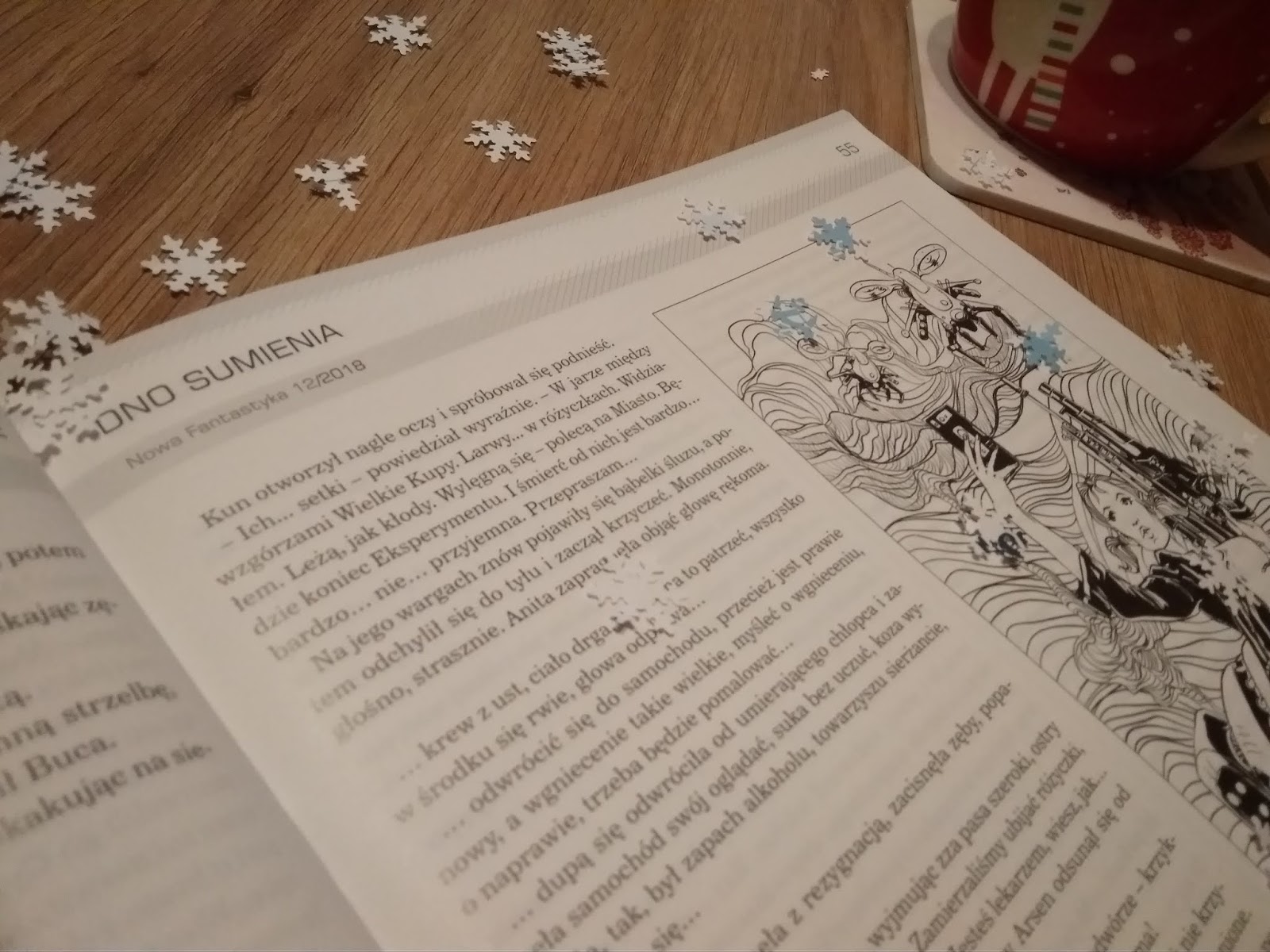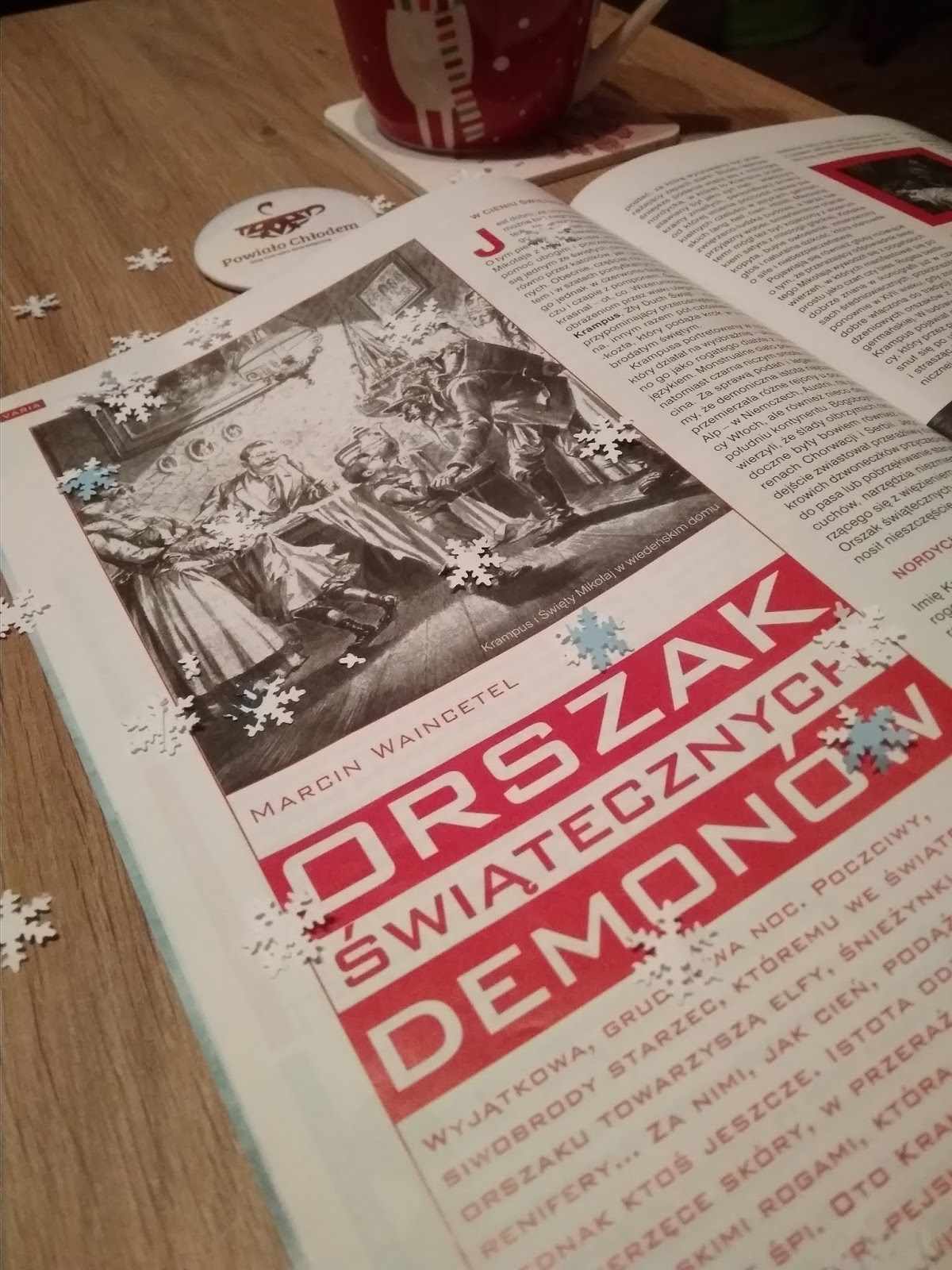 , „Wesołe Święta” poczułam jakby bardziej. Co z tego, że na okładce pyszni się demonicznie pazurzasta łapa w mikołajowym łachmanie? Przecież tematem numeru, jest orszak świątecznych demonów! Zwyczajnie nie mogłam tego nie przeczytać.